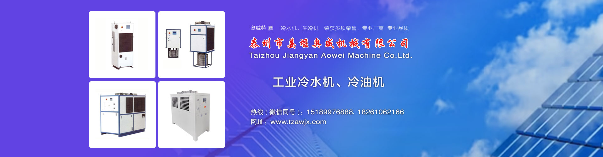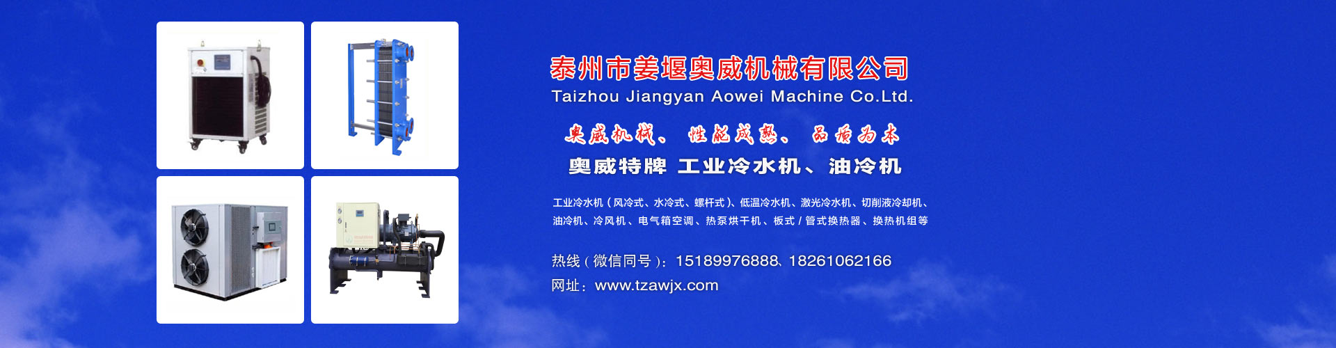 江蘇省,泰州市姜堰奧威機械有限公司,我公司是工業(yè)制冷設(shè)備,工業(yè)冷水機,油冷機,冷水機生產(chǎn)廠家(15189976888),公司集研發(fā)、設(shè)計、制造、銷售于一體。擁有20多年冷水機,油冷機,風冷式冷水機,水冷式冷水機,低溫冷水機,工業(yè)冷水機組,豐富生產(chǎn)經(jīng)驗,產(chǎn)品以成熟的品質(zhì),穩(wěn)定的性能,獲得到了廣大用的贊譽。